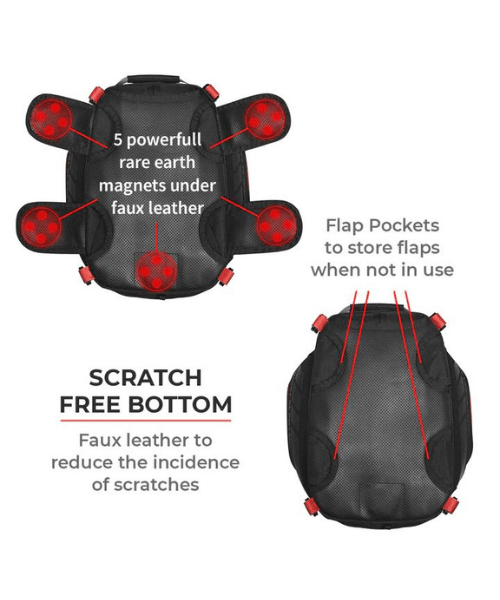 - The Fly Magnet Based tankbag is a versatile and durable solution for motorcycle riders to use on weekend trips or longer tours. The use of EVA laminated fabric and PP support ensure that the tankbag retains its shape and provides ample space for storing essentials. The magnet based system is specifically designed to work on metal tanks and offers a secure attachment point for the tankbag. Additionally, the external rain/dust cover helps protect the contents of the tankbag from the elements.
