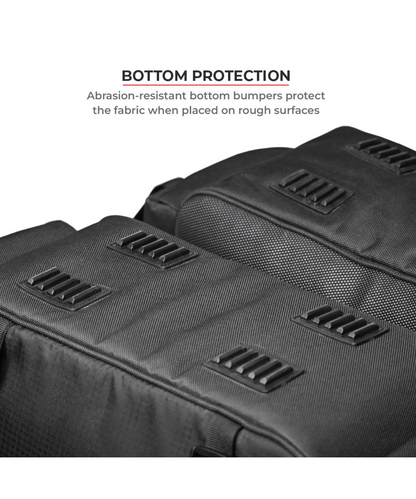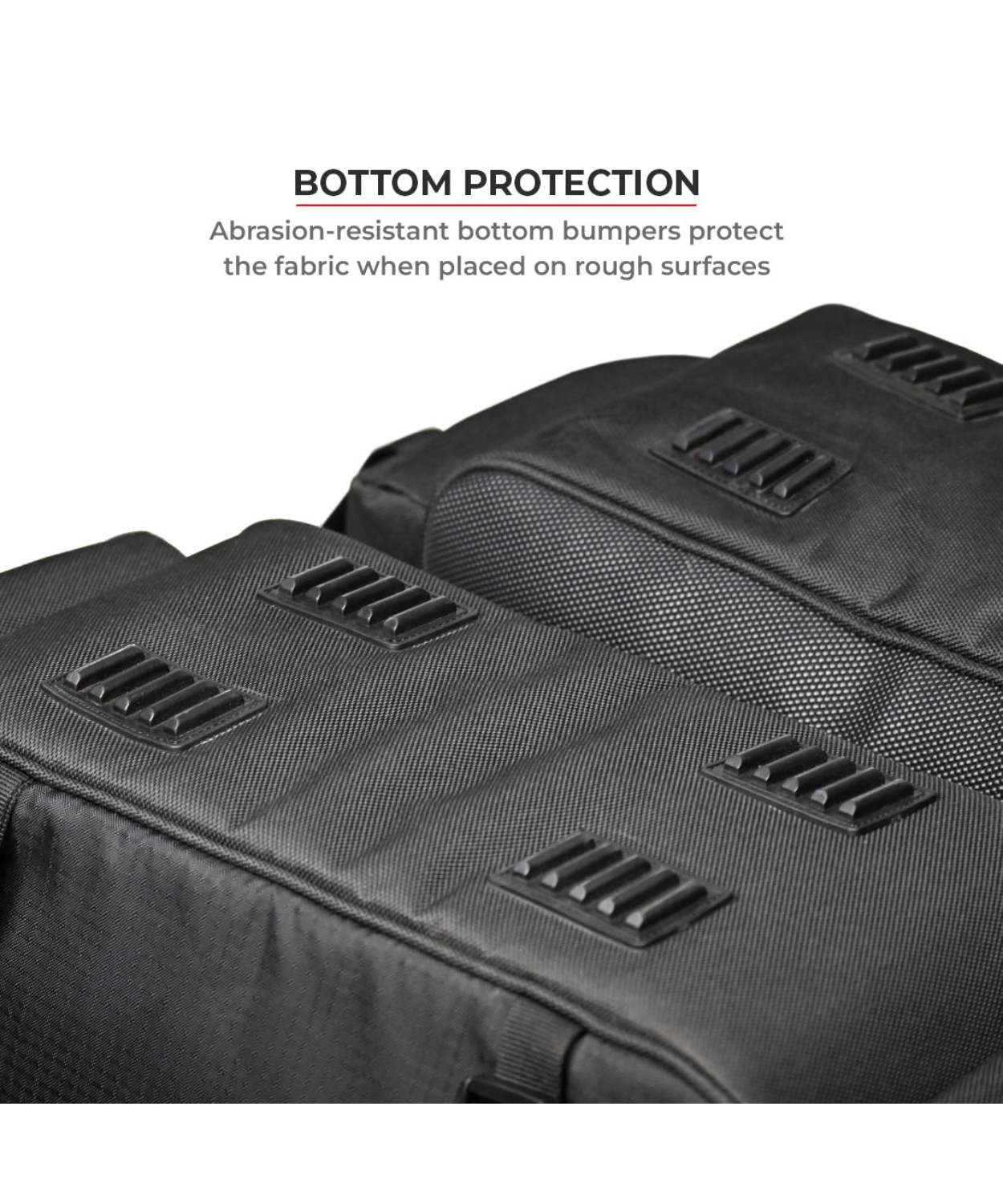 - Bottom bumpers secured to the bottom to protect the bag fabric from abrasion when placed on the ground