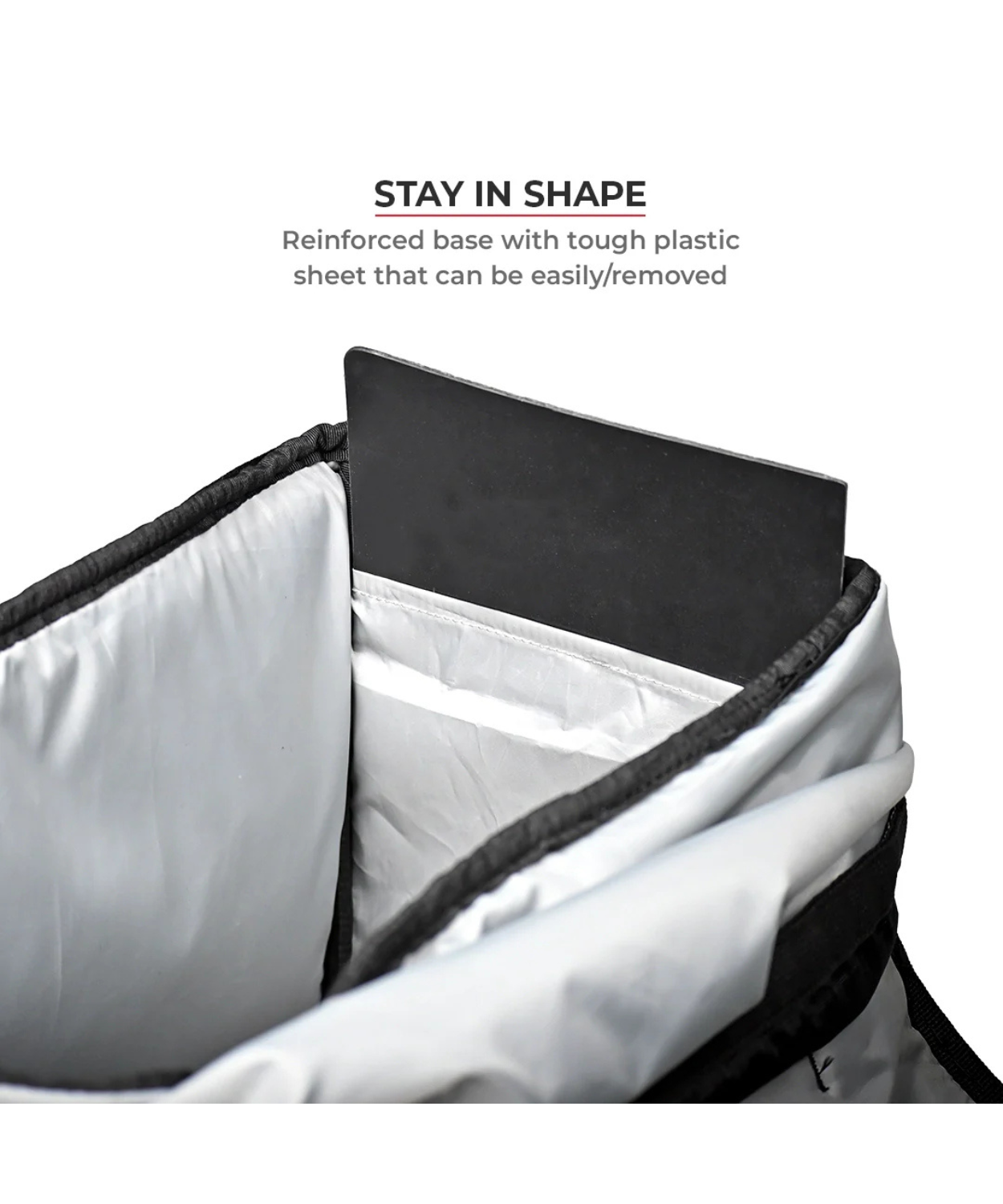 - Reinforced base with tough plastic sheet to maintain shape of the bag – this can be easily inserted/removed