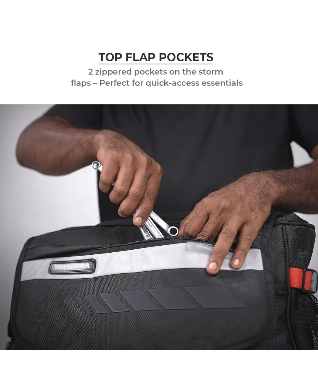 - 2 outside flap pockets with buckles – to carry tools, spare cans, first-aid kit or other quick-access items