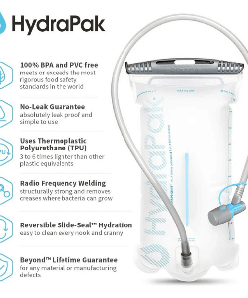 - HydraPak??sup>?Beyond??Lifetime Guarantee for bladder.