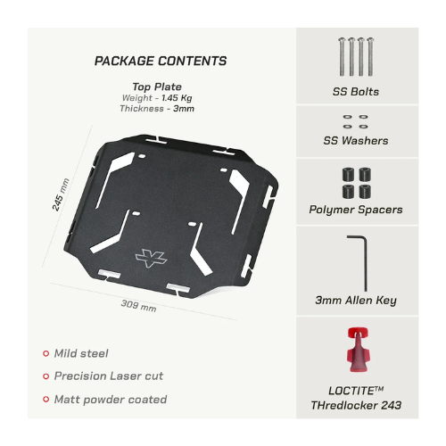- Large surface area: The Suzuki V-Strom SX Quick Mount Rear Rack has been designed with a large surface area to accommodate a balanced load.