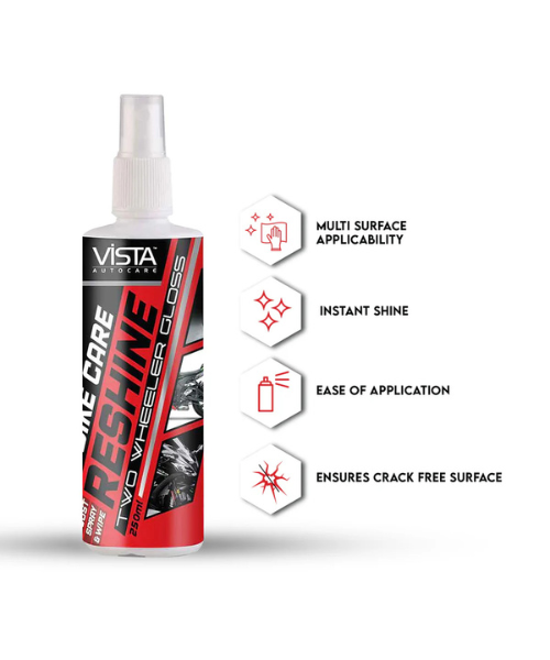 - Extend your bike and scooter shine for days with the powerful solvent of Reshine Two Wheeler Gloss.