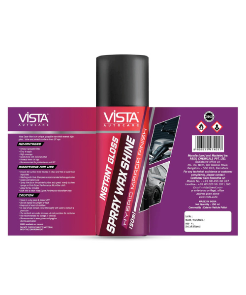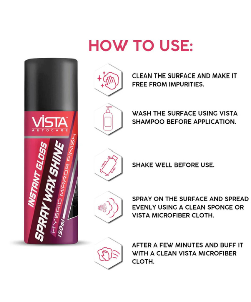 - Keep your car paint shining like new with the powerful hybrid mirror finish of Vista Spray Wax Shine.