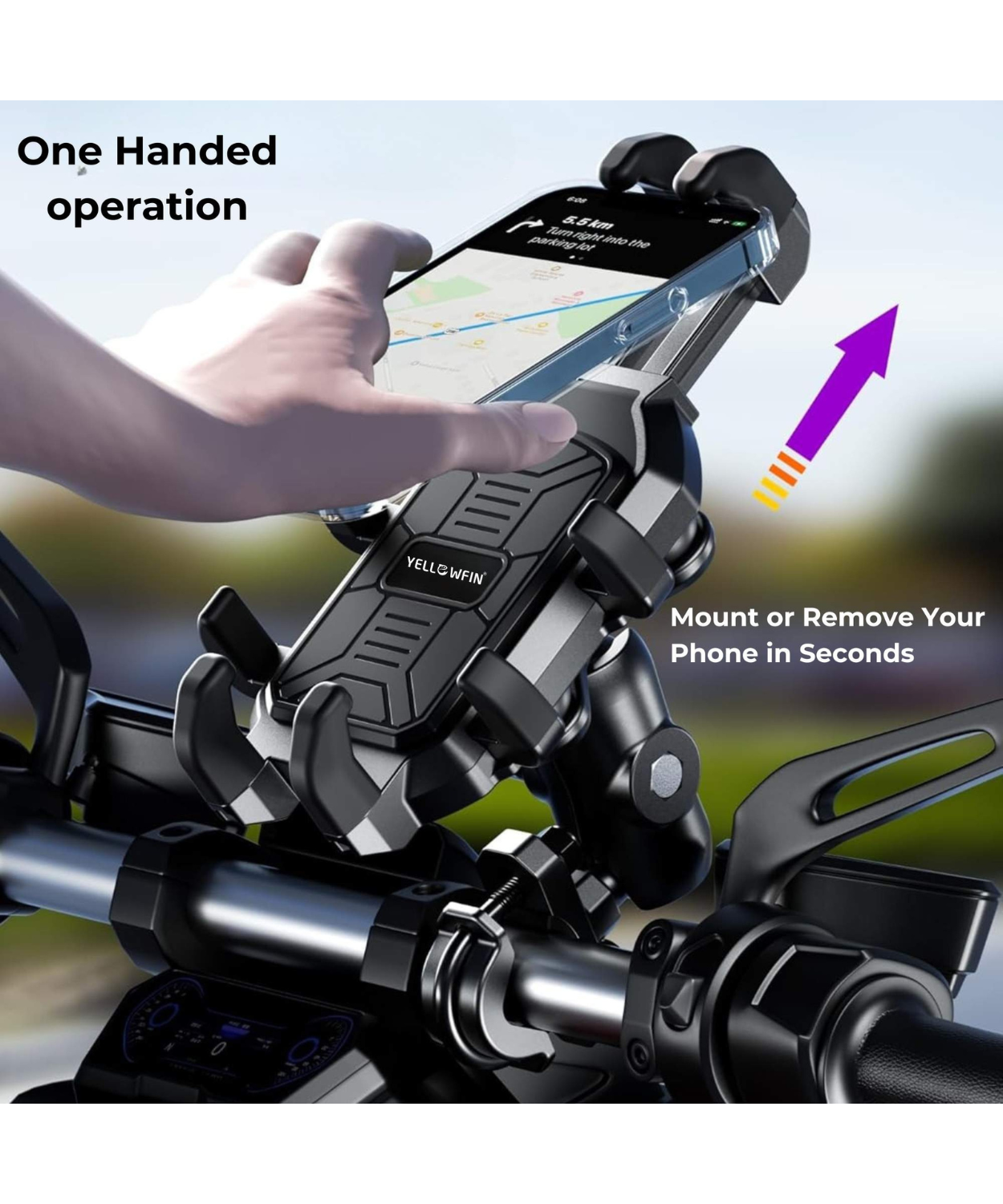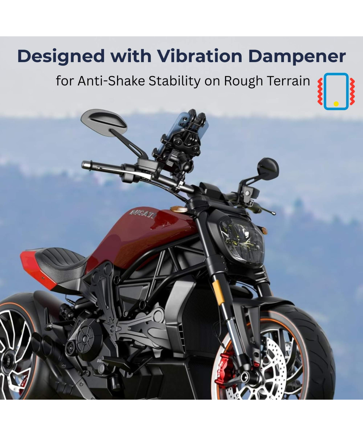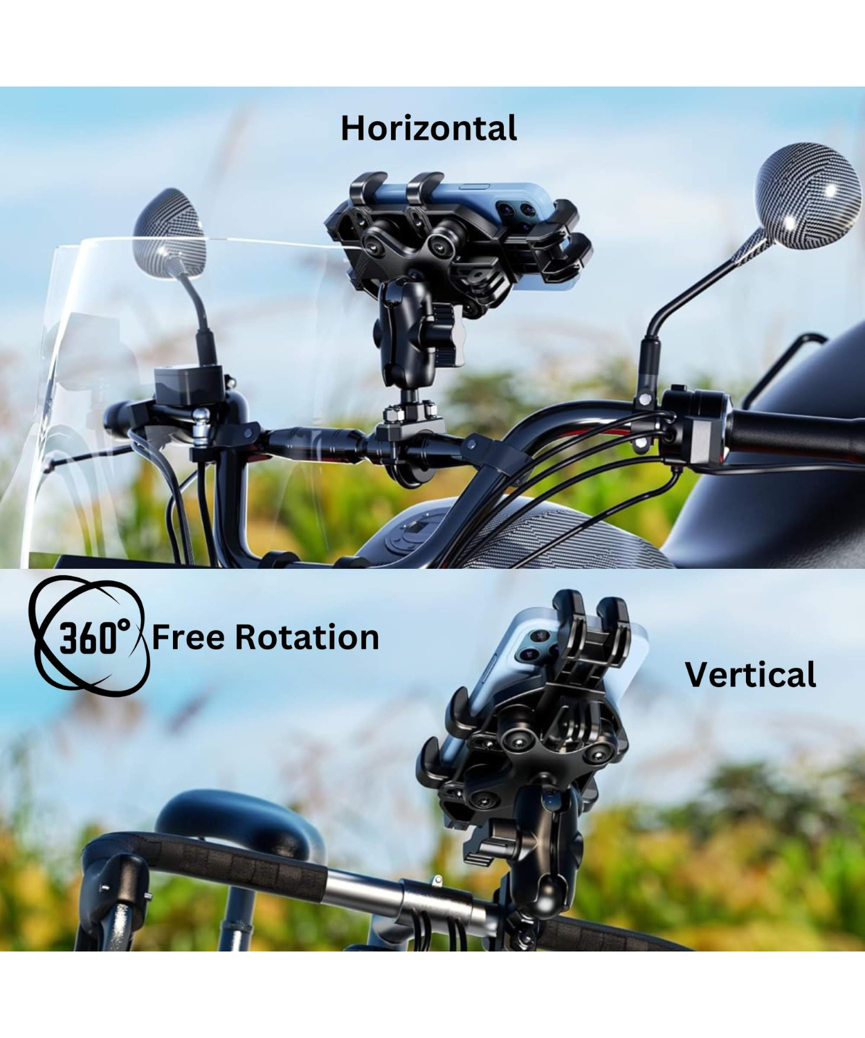 - Claw Grip Motorcycle Mobile Holder with Action Camera Mount with Vibration Damper, 720° Rotation Universal Phone Holder for Motorcycle, Bicycle, E-Bike, 5.4”–7.2” Smartphones (BKW 2in1).