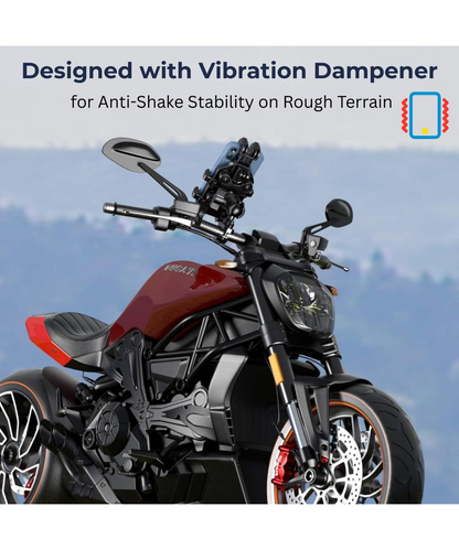 - The mount’s vibration dampening system reduces shocks from rough terrains, while the heavy-duty U-mount ensures your holder stays firmly attached to your handlebar.