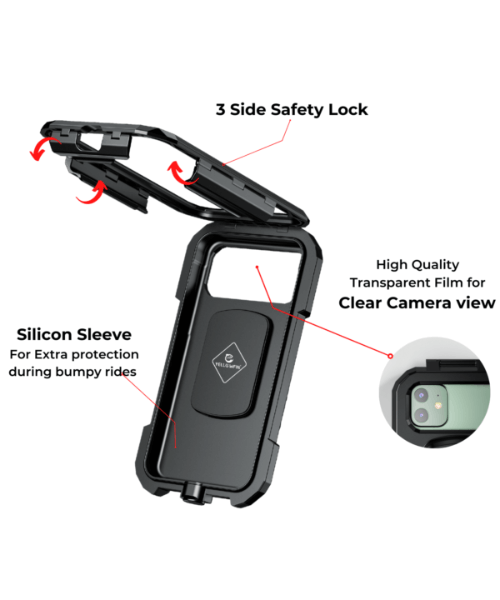 - Fully Enclosed Waterproof Design: This New Bike Phone Mount Is Waterproof for Freely Riding in Rainy Days! This Ip67 Waterproof Handlebar Motorcycle Phone Holder Is Compatible with Mobile Phones Up To 7” Screen Size.