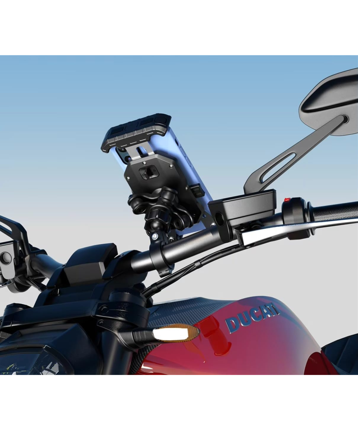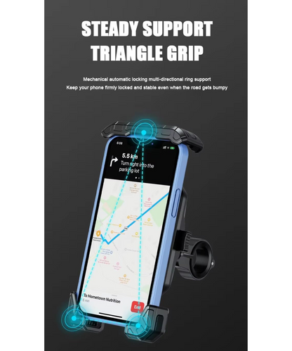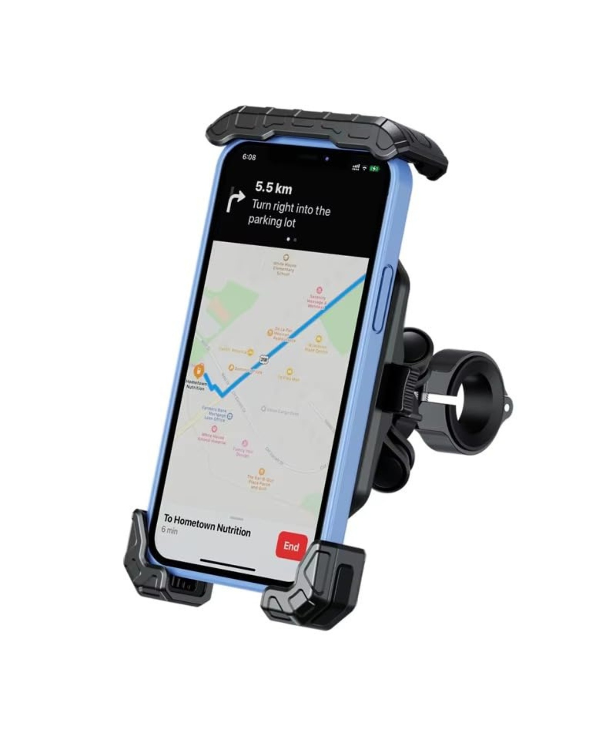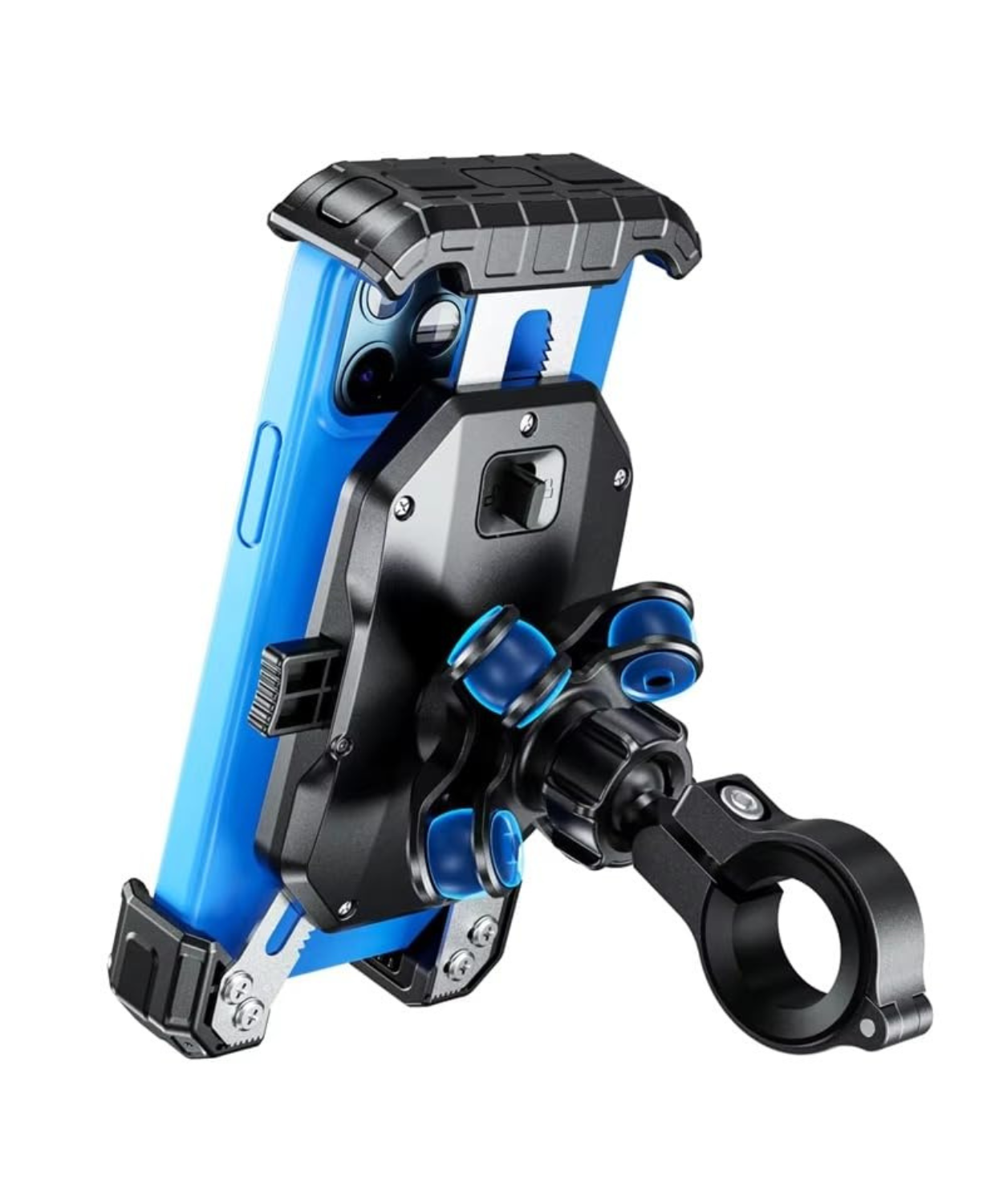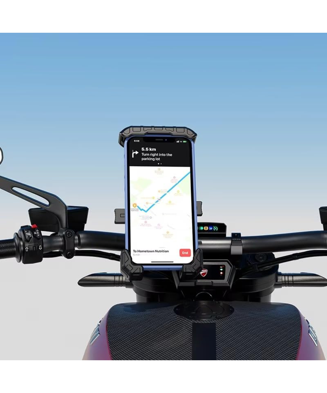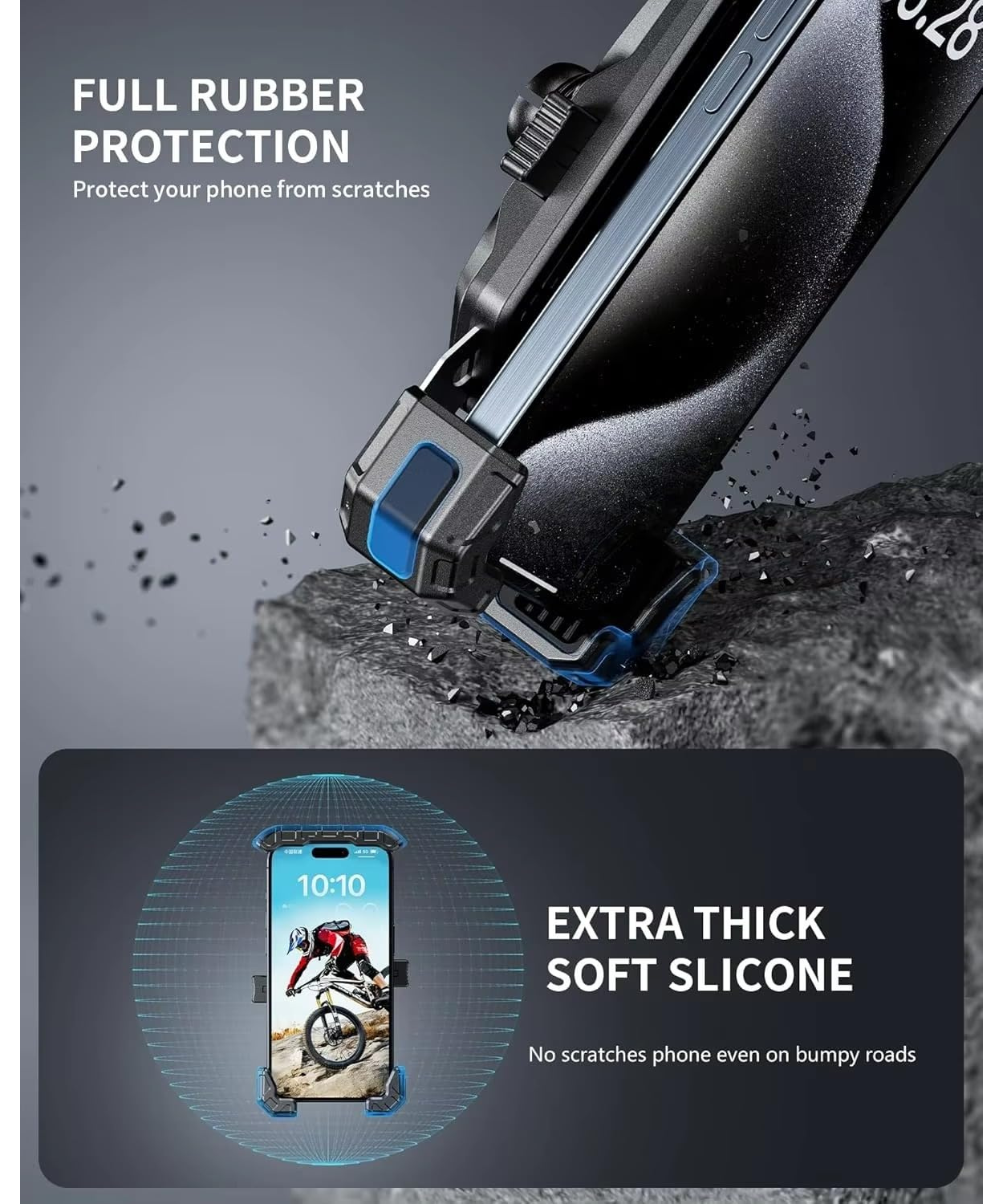 - All-Round Secure Grip – Top & Bottom Lock – Unlike side-only holders, this mount secures your device from both top and bottom corners, keeping all buttons and ports accessible while offering a rock-solid hold – even on the bumpiest terrains.