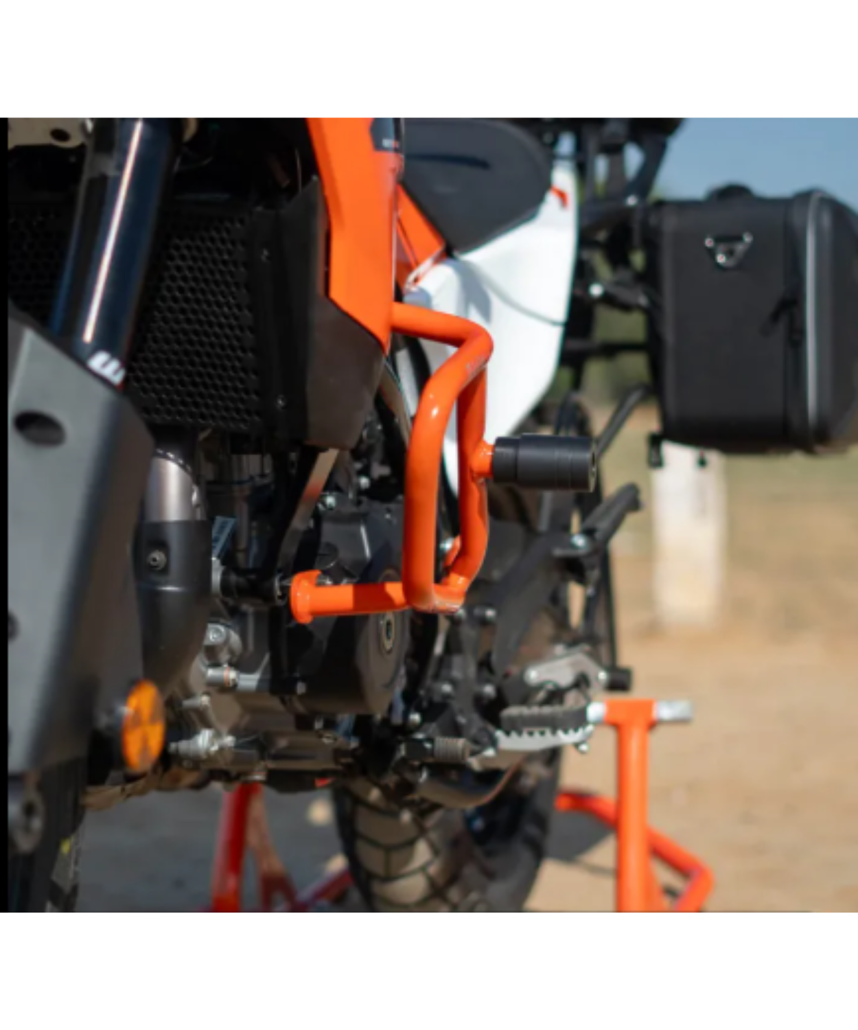 - The high-quality powder-coated orange finish perfectly matches the KTM ADV 390 2025, maintaining the bike’s iconic appeal.