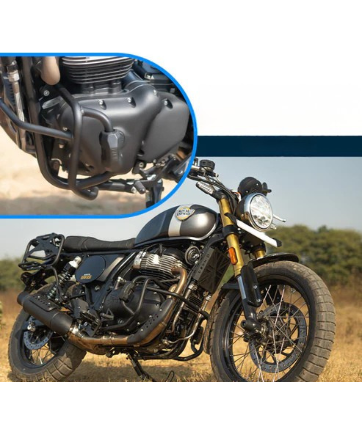 - Engine Guard with Slider Puck (MS Black) is a premium protective accessory for the Royal Enfield Bear 650, designed to safeguard critical components during on-road and off-road adventures. Crafted from durable mild steel with a textured black finish, it ensures lasting performance and robust protection against impacts, falls, and obstacles.