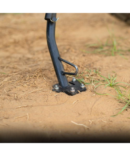 - Designed for durability and stability, this side stand extender ensures your bike stands securely, preventing it from sinking into soft or wet ground. It features a non-slip design for reliable use.