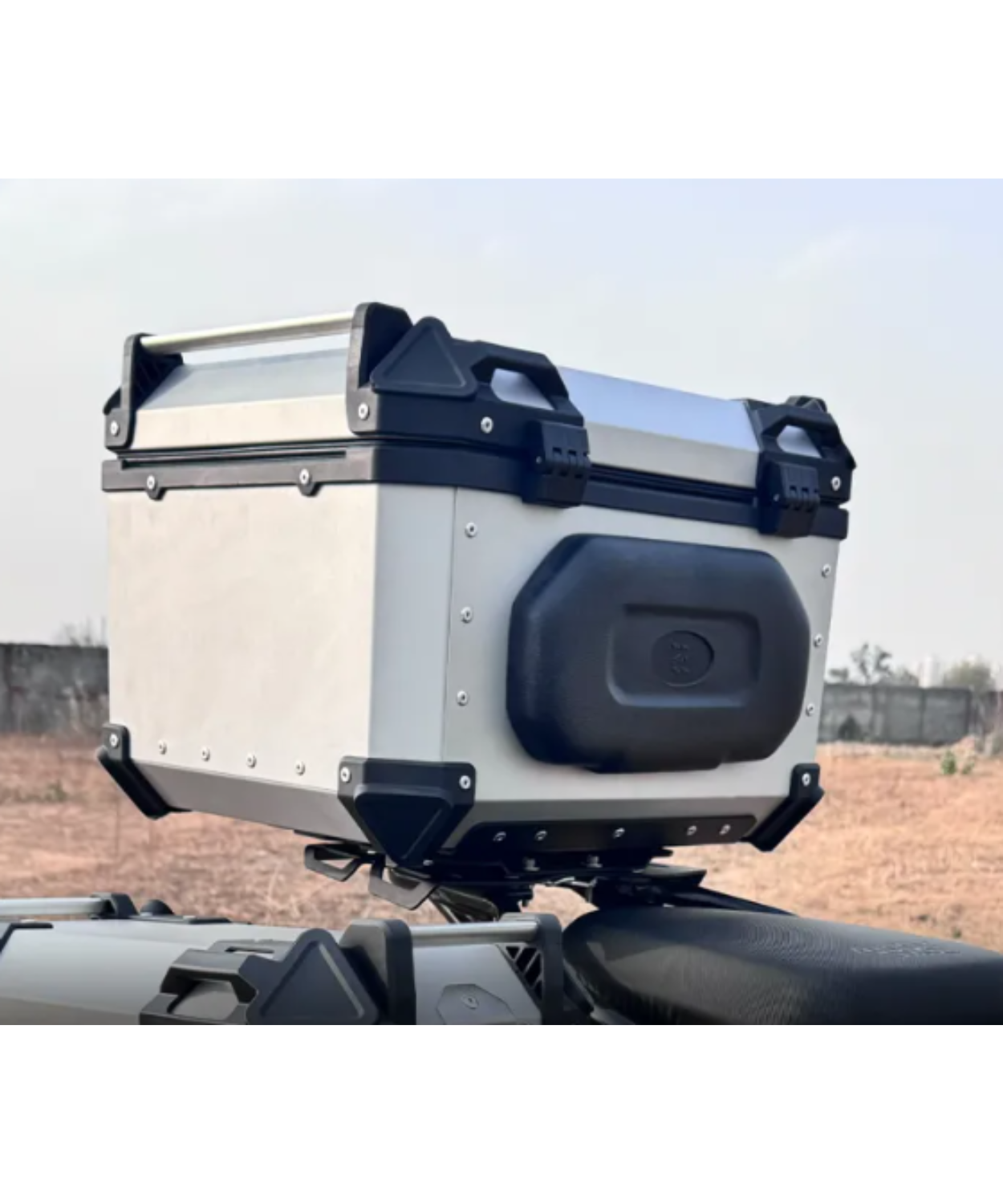 - Enhance your BMW F 900 XR’s storage capacity with this premium 55-liter Aluminium Silver Top Box, engineered for adventure. Constructed entirely from high-quality aluminium, including both the base and top cover, this top box is designed to be robust and rust-proof, ensuring long-term durability.