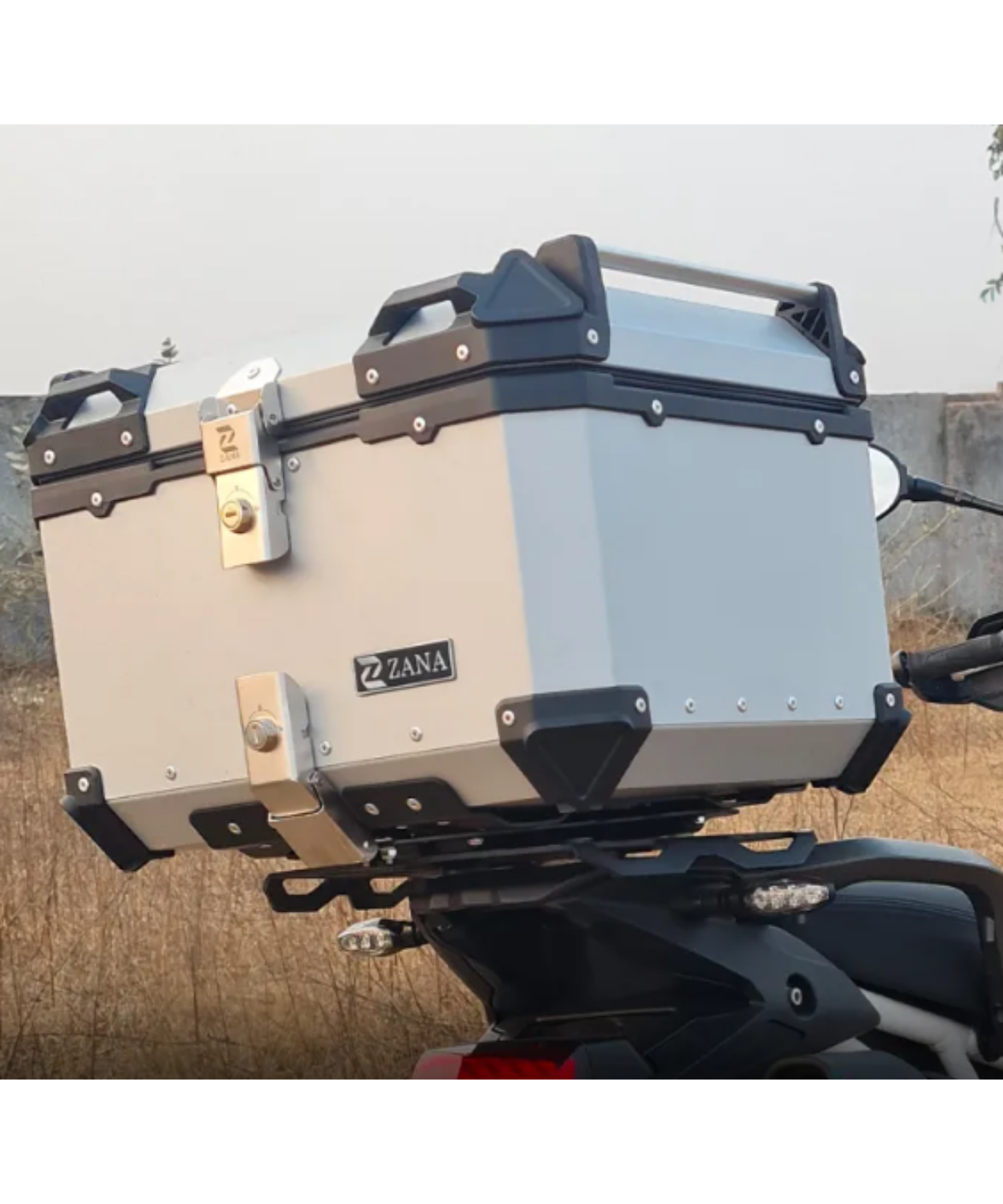 Zana Universal Aluminium L-Flat 55 L Top Box With Back Rest Cushion - Silver - ZI-TB-013